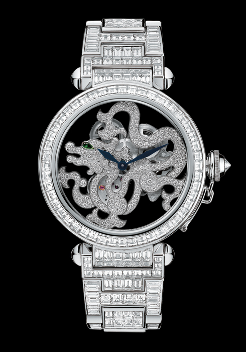 까르띠에 파샤 드 까르띠에 스켈레톤 드래건 모티브 워치 42mm