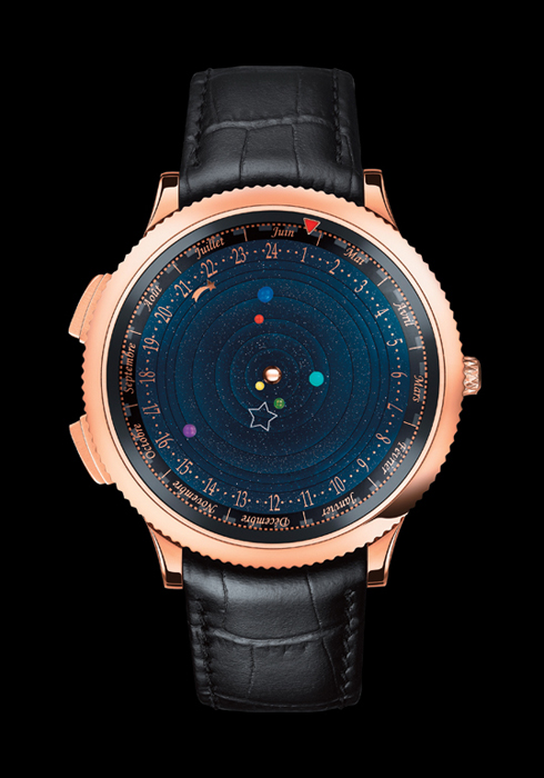 가장 까다롭고 어려운 기술을 선보이기에 품격 있는 워치 브랜드의 대열에 이름을 올리는 바쉐론 콘스탄틴은 올해 천체 기능을 탑재한 천상의 예술 작품을 선보였다. 단 하나만 제작했을 정도로 정교한 기능을 담은 이 워치는 수동 기계식 칼리버 2755-B1 안에 15가지 까다로운 컴플리케이션 기능을 모두 담고 있다. 총 8백29개의 부품을 사용했지만 가독성이 뛰어나고 디자인이 심플하다. 미닛 리피터, 균시차 측정, 투르비용, 퍼페추얼 캘린더, 윤년 표시, 월·일·요일, 파워 리저브, 일출과 일몰 시간, 시·분 표시 등 11개 이상의 컴플리케이션 기능을 시계 앞뒷면을 통해 확인할 수 있는데, 더욱 놀라운 것은 가독성이 뛰어나다는 것이다. 지금까지 여러 기능을 담은 시계들은 복잡한 기능만큼이나 읽기 어려웠다는 것을 생각하면 진일보한 발전이다. 여기에 천체, 하지와 동지, 춘분과 추분, 항성시, 사계절, 십이궁도 등 천체와 관련된 컴플리케이션을 담고 있어 말 그대로 시계로 만든 작은 우주라는 말이 가장 잘 어울리는 워치다.