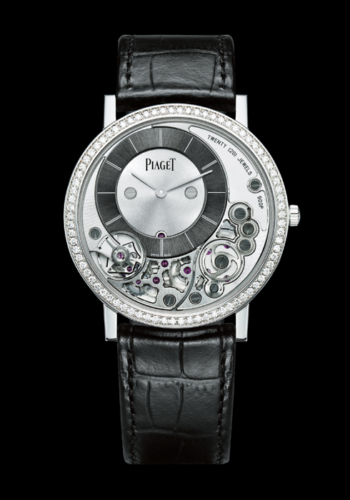 워치메이커이자 주얼리 브랜드로 잘 알려진 피아제가 선보인 세계에서 가장 얇은 시계 알티플라노(Altiplano) 900P. 피아제는 지금까지 자체 제작으로 선보인 37개의 인하우스 무브먼트 중 무려 25개의 무브먼트를 울트라-신 모델로 선보였을 정도로 독보적인 기술력을 갖추었다. 그중 14개의 무브먼트가 지난 몇 년간 울트라-신 부문에서 신기록을 수립했다. 이러한 노하우를 기반으로 선보인 알티플라노 900P는 두께가 3.65mm에 불과해 모두를 놀라게 했다. 무브먼트와 케이스가 통합된 독특한 구조로 핸드와인딩 무브먼트와 케이스 부품들이 유기적으로 결합해 믿을 수 없을 만큼 얇은 시계를 완성했다. 케이스 백이 메인 플레이트 역할을 하는 대담한 구조가 울트라-신 워치를 완성한 결정적인 요소다. 머리카락보다 얇은 부품이 있을 정도로 정교한 이 제품은 일부 휠의 두께가 0.12mm에 불과하다. 고정된 부품과 움직이는 부품의 간격이 1백분의 1mm 정도라니 과연 시계 예술이라 칭할 만하다.