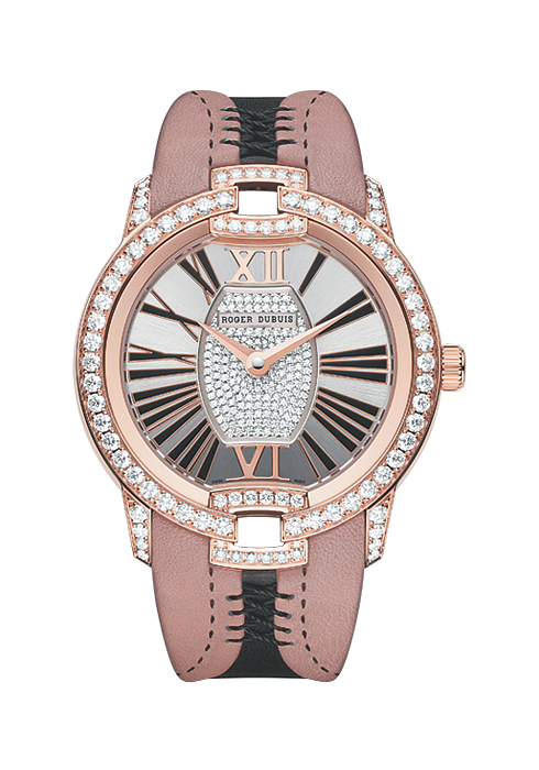 보다 대담하고 과감해진 로저 드뷔의 여성 컬렉션. 코르셋과 블랙 망사, 밍크 소재 등을 거침없이 매치해 눈길을 사로잡았다. 수작업으로 완성한 이번 여성 컬렉션은 기존 로저 드뷔 여성 컬렉션의 아이덴티티를 이어받은 것은 물론, 화려한 디바의 세계에서 영감을 얻어 여성의 관능적인 곡선을 상징하는 벨벳 코르세트리, 블랙 망사 스타킹에서 영감을 얻은 벨벳 파스망트리까지 팜 파탈 워치의 모든 것을 담았다. 로저 드뷔의 대범함을 전하는 톱 모델 스테파니 시모어가 등장하는 광고 캠페인 역시 시계의 분위기를 그대로 느낄 수 있을 만큼 화려하다. 물론 시계 장인인 로저 드뷔의 컬렉션인 만큼 셀프와인딩 무브먼트 RD821을 장착해 드라마틱한 외관만큼이나 기계식 시계로서의 가치도 탁월하다. 벨벳 컬렉션을 위한 모든 세공은 각 소재별로 가장 명망 높은 부티크들과의 컬래버레이션으로 완성했다.