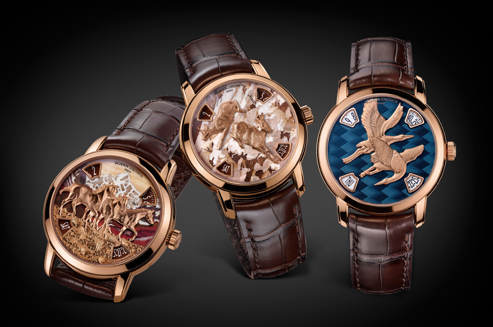 ‘자연에 바치는 찬사?라는 의미를 지닌 바쉐론 콘스탄틴의 장인 정신이 담긴 컬렉션. 해마다 예술과 공예에 대한 브랜드의 열정을 담아 선보이는 메티에 다르 컬렉션의 신제품인 ‘레로쥬 드 라 네이처? 컬렉션은 시와 분을 표기하는 핸즈 없이도 시간을 읽을 수 있는 새로운 다이얼을 선보였다. 금으로 만든 야생마와 알프스 산의 샤무아, 동쪽에서 날아오는 두루미를 그래픽적으로 표현한 세 가지 디자인의 워치가 완성도 높은 하나의 컬렉션을 완성했다. 기요셰 패턴과 나무를 이용한 상감 기법, 에나멜링은 모두 마스터 장인의 손끝에서 완성된 것으로, 사실주의적인 기법을 사용했다. 4개의 모서리에서 시간을 읽을 수 있도록 고안한 2460G 칼리버는 이번 컬렉션의 예술적 가치를 더욱 돋보이게 하도록 고안한 창의적인 무브먼트다. 제네바 홀마크 인증을 받은 무브먼트로, 시계 예술을 한 단계 업그레이드하는 데 결정적인 역할을 했다.