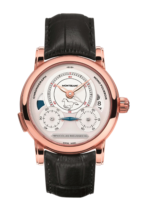 몽블랑 워치 컬렉션 중 가장 많은 마니아층을 형성하고 인상적인 기능으로 오래도록 사랑받고 있는 니콜라스 뤼섹의 한정판 에디션. 프랑스 왕실의 워치메이커였던 니콜라스 뤼섹이 경주마의 기록을 정확히 측정하기 위해 고안한 장치를 손목시계로 구현한 이 워치는 각 60초와 30분 경과를 표시할 수 있는 2개의 하얀 에나멜 디스크가 회전하는, 최초의 크로노그래프 워치 발명가인 니콜라스 뤼섹의 업적에 경의를 표하는 컬렉션이다. 날짜 디스플레이, 세컨드 타임 존과 낮과 밤을 표시하는 인디케이터까지 담겨 있어 1821년 오리지널 크로노그래프를 재현함과 동시에 현대적인 아름다움까지 더했다. 더블 배럴 무브먼트인 기계식 매뉴팩처 칼리버 MB R200은 72시간 파워 리저브 기능을 갖췄다. 6시 방향에 우아하게 질주하는 경주마의 모습이 담겨 있고, 백 케이스에는 경주마와 ‘Paris, September, 1821? 문구가 새겨져 있다. 로즈 골드 버전 30개, 스테인리스 스틸 버전 1백 개 한정 판매한다.