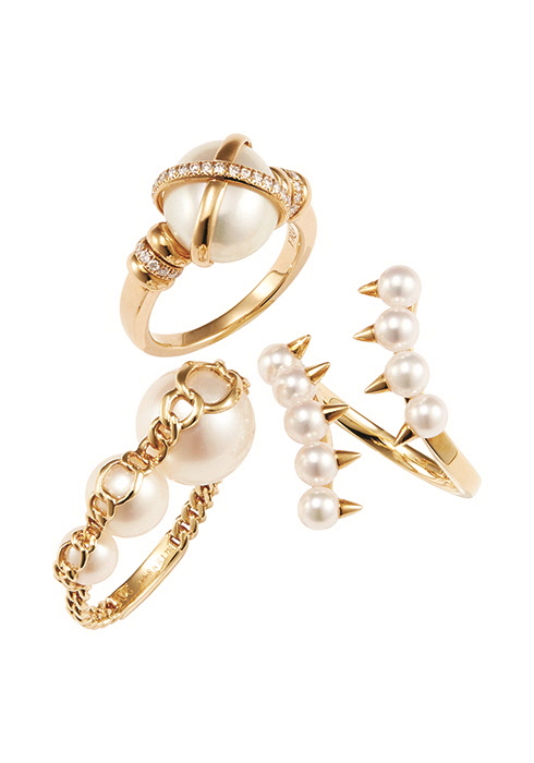 타사키 데인저 링 날카로운 가시를 표현한 18K 옐로 골드에 아코야 진주 8개를 더해 과감한 디자인과 섬세한 세팅을 동시에 보여준다. 2백95만원. 문의 02-3461-5558