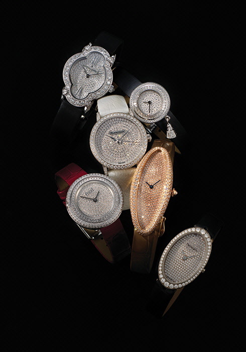 손목 위 시간을 확인할 때마다 반짝이는 그 빛이 아름답다. 다이아몬드 풀 파베 다이얼 워치.