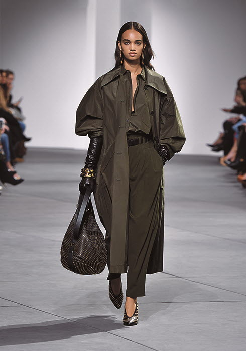13 오버사이즈 코트와 팬츠 룩에 여성스러운 블라우스를 더해 멋스러운 우아함을 선보인 젠더리스 룩. 14 마켓 바스킷에서 얻은 영감으로 탄생해 실용성과 디자인 모두를 만족시키는 밴크로프트 백.