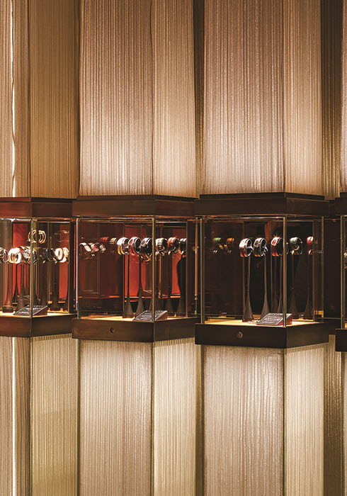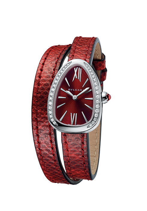 올해 불가리 파빌리온에서는 불가리의 아이콘인 ‘세르펜티’가 주인공 중 하나라는 점을 한눈에 알 수 있는 쇼윈도 디스플레이가 눈길을 사로잡았다. 특히 여성 바이어와 프레스, 고객을 사로잡으며 가장 큰 관심을 받은 여성 시계는 단연 ‘뉴 세르펜티’로, 형형색색 다이얼과 팔목에 두 번 감는 형태의 스타일리시한 더블 스트랩이 조화를 이루는 뉴 세르펜티는 부스 곳곳에서 “예쁘다”, “사고 싶다”라는 감탄사와 함께 SNS에도 업데이트가 월등하게 많이 된 시계 중 하나다. 그간 불가리만의 금세공 기술과 하이 주얼리 제작 노하우를 바탕으로 세르펜티의 DNA인 뱀 모티브를 수없이 다양한 방식으로 재해석해온 불가리는 기존의 화려하고 대범한 하이 주얼리 워치 디자인을 보다 젊고 웨어러블하게 변화시켜 그동안에는 선보인 적 없는 아주 새로운 모습으로 소개했다. 뱀의 머리를 미니멀하게 형상화한 케이스와 물뱀의 일종인 카룽(Karung) 소재의 더블 가죽 스트랩으로 세르펜티 컬렉션의 새로운 아이코닉 제품으로 탄생시킨 것. 독특하고 특별한 비늘 패턴의 부드러운 광택을 지닌 카룽 가죽에 그린, 핑크, 블루, 화이트, 레드, 블랙 등 선명하고 강렬한 컬러를 입힌 더블 스트랩은 특별하고 실용적인 시스템을 통해 혼자서도 손쉽게 다른 컬러의 스트랩으로 교체할 수 있다는 점에서 매우 스타일리시하다. 실제 뉴 세르펜티 워치를 구입하면 고객이 선택한 두 가지 컬러의 스트랩을 제공하니 하나의 시계로 두 가지 스타일을 즐길 수 있고, 5월부터 불가리 부티크에서 다양한 컬러의 스트랩을 선보이니 취향에 맞게 추가로 구입해 매치해도 좋다. 여기서 한 가지 주목해야 할 재미있는 부분은 세르펜티 맞춤 제작 앱을 통해 케이스부터 다이얼, 보석 세팅, 스트랩, 백케이스 인그레이빙까지 나만의 맞춤 세르펜티 워치를 만들 수도 있다는 점. 컬러와 옵션 조합이 무려 3백12개에 달한다고 하니 나만의 세르펜티를 창조함과 동시에 그간 열망했던 유니크한 시계를 디자인할 기회인 셈이다.