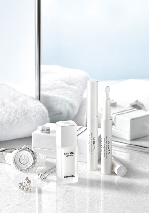 르 블랑 렉스트레 인텐시브 유스 화이트닝 트리트먼트 20ml 39만6천원, 르 블랑 인텐시브 화이트닝 스팟 트리트먼트 데이 앤 나이트 듀오 7mlX2, 11만6천원 모두 샤넬.