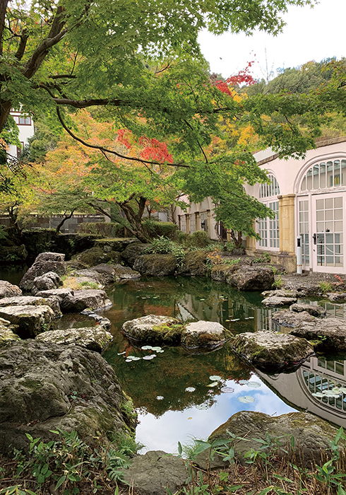 그렇지만 많은 이들이 산장 미술관을 찾는 주된 이유 중 하나는 세계적인 ‘스타키텍트’이자 간사이 지방 출신인 안도 다다오가 가가의 별장을 미술관으로 확장할 때 참여한 원주형의 지중관(‘지중의 보석상자’라는 뜻, 1995년)에서 선보이는 걸출한 컬렉션으로 유명세를 떨치고 있기 때문이다. 2012년에는 기획전을 위한 야마테칸 ‘꿈의 상자’의 증축에도 참여했다. 덴노 산자락에서 오롯이 1백여 년 세월의 풍파를 견뎌낸 본관의 위용을 존중하듯 안도 다다오 특유의 간결한 건축 미학이 묻어나는 지중관은 반지하로 들어가 본관의 차분한 배경이 되어주는데, 안에서는 인상파의 개척자 클로드 모네의 그 유명한 ‘수련’ 시리즈를 계절별로 교대해 전시한다. 고즈넉한 산속에서 거장의 붓 터치를 차분히 즐길 수 있는 기회이기에 단연 미술관의 ‘하이라이트’로 꼽힌다. 물론 미술관의 소장품 목록에는 모네의 수련 5점 이외에도 아메데오 모딜리아니(1884~1920), 알베르토 자코메티(1901~1966), 이사무 노구치(1904~1988), 헨리 무어(1898~1986) 등 20세기 거장들의 회화, 조각 작품이 다수 포함되어 있다. 산장 곳곳에 소장품이 전시되어 있기도 하므로 미술관 밖으로 나와 산을 병풍 삼고 연못을 벗 삼아 유유자적 거닐어보는 산책의 발품을 자연스럽게 유도한다. 이렇듯 소장품과 기획전을 아우르며 안팎을 찬찬히 감상하다 보면 짧아진 해가 아쉽기만 했다.