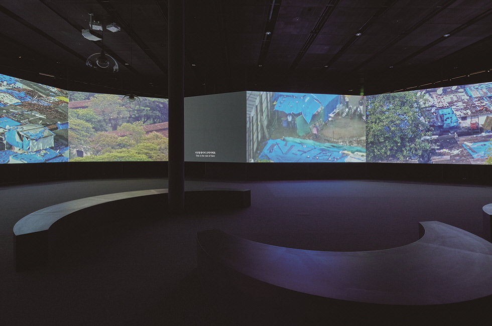 백남준은 관객, 그러니까 뭇 사람들의 ‘참여’를 통한 지구촌 실현의 꿈을 꿨고, 그 도구로 비디오를 꺼내 들었다. 그러한 실험 정신을 계승하는 인도 뭄바이 기반의 협업 스튜디오 그룹 캠프(CAMP)는 오늘날 모두가 미디어의 텃밭을 노니는 듯한 네트워크 시대가 펼쳐지고 있지만, 사실은 거대한 미디어 인프라가 우리 삶과 가치 체계를 빈틈없이 포착하고 장악하고 있다는 ‘진실’에 눈감아서는 안 된다고 주장한다. CCTV 카메라로 새로운 예술 매체의 가능성을 꾸준히 실험해온 캠프는 기술을 직접 몸으로 부딪혀 다루면서 개입하고 전복하며 자율적으로 시스템을 만들어나간다. 매체 기술이 약속했던 허탈한 전망에 맞서 그 ‘이후’를 제안하는 캠프의 전시는 우리 지구촌 시민들의 다양한 힘을 모아 미디어의 문턱을 낮춰 진정한 ‘공유’를 꾀하자고 말한다. 백남준아트센터에서 오는 2월 27일까지.