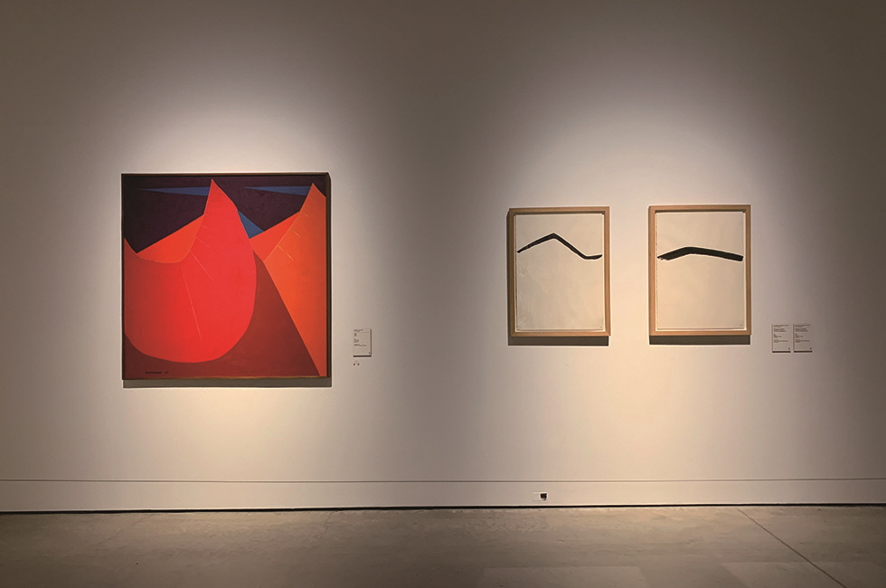 하지만 유채로 산의 거대함을 무던히 캔버스에 담아온 유영국의 작품(Work, 1973)과 종이에 먹으로 한 폭의 산맥을 단아하게 그려낸 노르웨이 작가 안나 에바 베르그만이 담아낸 북녘의 풍경(Paysage du Nord III, 1980)이 배치되는 풍경의 기억 앞에서 동서양의 비교는 그야말로 무색하다.